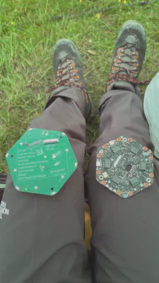 Oh and the badge! I almost forgot to talk about the badge! Again, EMF is a hacker camp, so the attending badge is not just a badge, it’s a PCB with a microcontroller ^^. Two PCBs in fact: one for the top and one for the bottom. Not only is it visually stunning (the theme for this year’s EMF was “Solarpunk”)