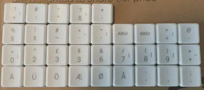 Danish/Nordic specific keycaps, as well as German and British specifics.